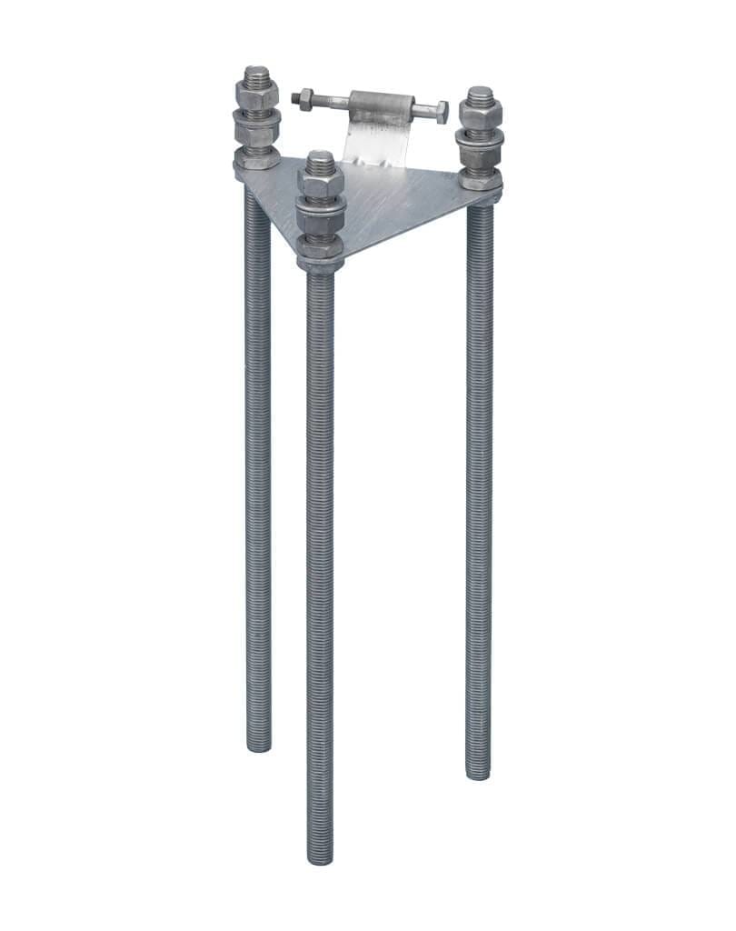 Door de 3 draadeinden met moeren en de kantelplaat kunt u de mast recht zetten als deze licht scheef staat.