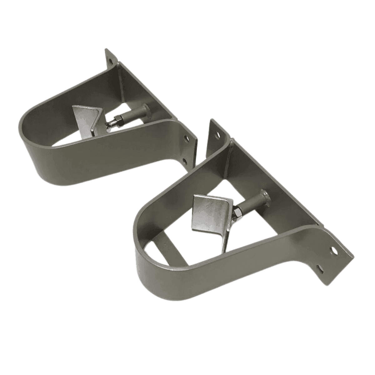 De muurbeugels zijn te verkrijgen in meerdere maten te weten voor vlaggenmast Ø 60, Ø 70 en Ø 76 mm en voor vlaggenmast van Ø 90 mm en Ø 100 mm. Door middel van een schroefdraad met driehoeksplaatje kan je de verschillende diameter masten eenvoudig klem zetten. De onderste beugel is tevens voorzien van een dwarsligger waar de mast op komt te staan en dus niet naar beneden kan zakken.