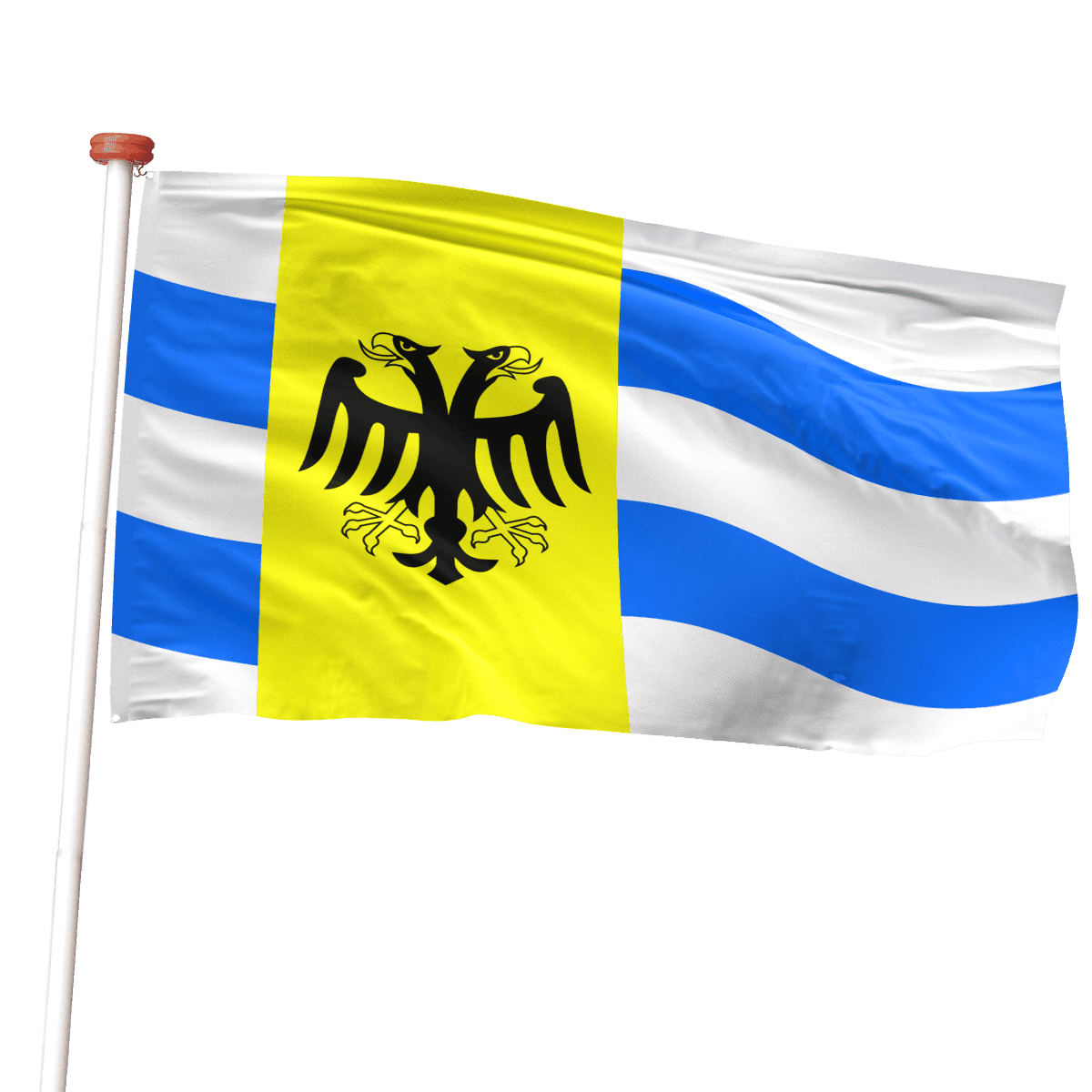 - Regionale en Culturele Symboliek: De vlag van West Maas en Waal combineert elementen en kleuren die de identiteit en de natuurlijke eigenschappen van de gemeente vertegenwoordigen. Het ontwerp symboliseert de belangrijke rol van de rivieren, die zowel historie als hedendaagse invloed uitoefenen op de regio.